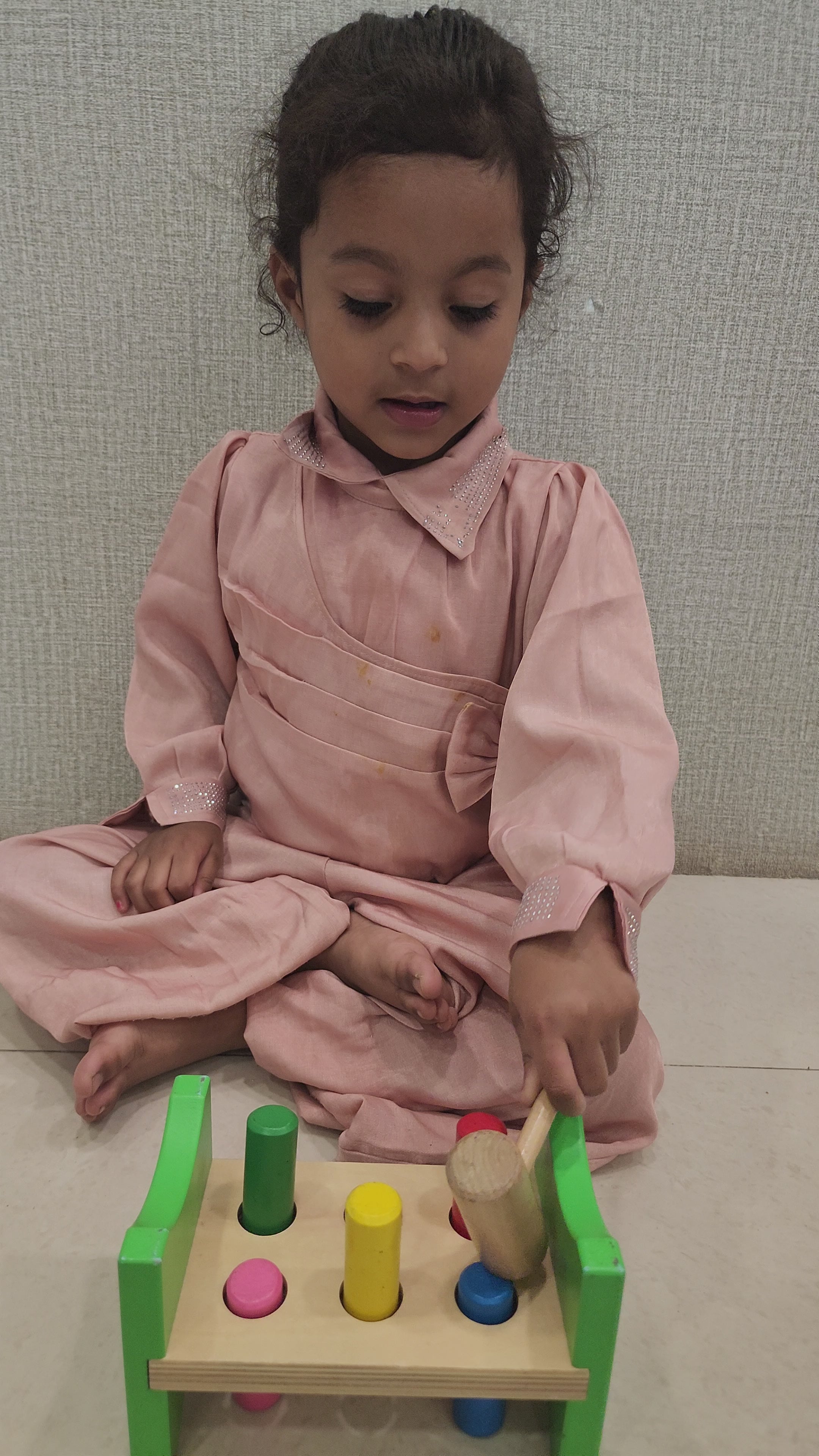 Let your little one enjoy hours of hands-on fun with this colorful Wooden Hammer & Peg Bench Toy! Designed for toddlers and preschoolers, this toy encourages active play while boosting hand-eye coordination. Kids can use the wooden hammer to pound the vibrant pegs through the holes and then flip it over to start again — simple, fun, and endlessly entertaining!